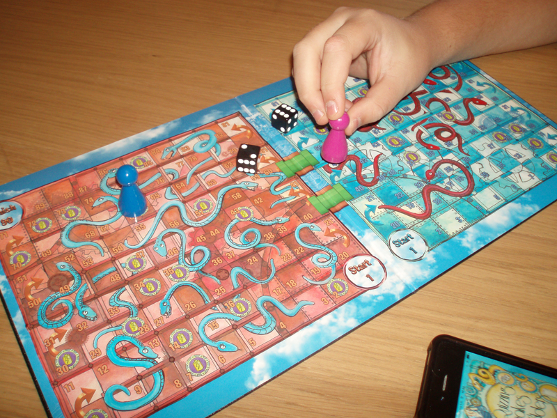 Snakes and Ladders is an ancient game that relies entirely on luck. Quizzing Snakes and Ladders gives luck a a twist in the tail and it has replaced ladders with the intriguing power packs. It is best played with three players but adaptions to this are easy. To set up you will need a mobile phone. Go to google play and choose the free Quizzing snakes and ladders App. You will find loads of different topics for your game: general knowledge, dinosaurs, films, pop stars whatever your interest (and, of course, quizzes about books published by Seven Arches) ... Players have a board each. Do you want to play on the red board, the blue board OR be the Quizmaster in charge of the phone and the dice? Throw a die to choose. The highest number chooses first. The players place their pawns on the start square of their board. The Quizmaster rolls two dice and the numbers are added together and the players move on their board that number. If you land on a power pack you must answer a question put to you by the Quizmaster. If you get it right you move forward more squares according to the rules but, if you get it wrong, back you go. Of course, if you land on a snake's head you slide down just like the original game. There is a cruel strategy option, and you'll find more detail in the full rules but this is a game that can have as many different versions as there are different snakes on the planet. (Do I just mean an animal that has had a bad press since forever, or could it be that person smiling at you across the room?) Quizzing Snakes and Ladders is old meets new and you'll love it.